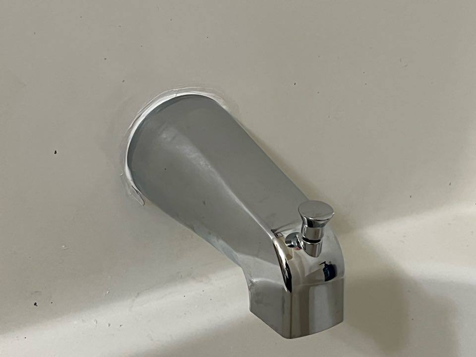 Broken off tub spout. Hard water caused diverter to stick. Install new tub spout. City Heights.