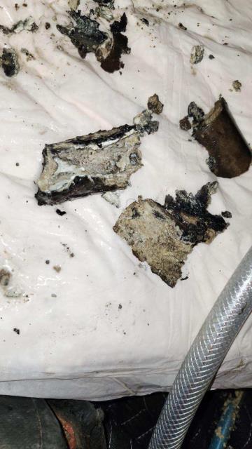 Water was overflowing from the sink from the unit above. Snaked the water and found grease caked in the pipe
